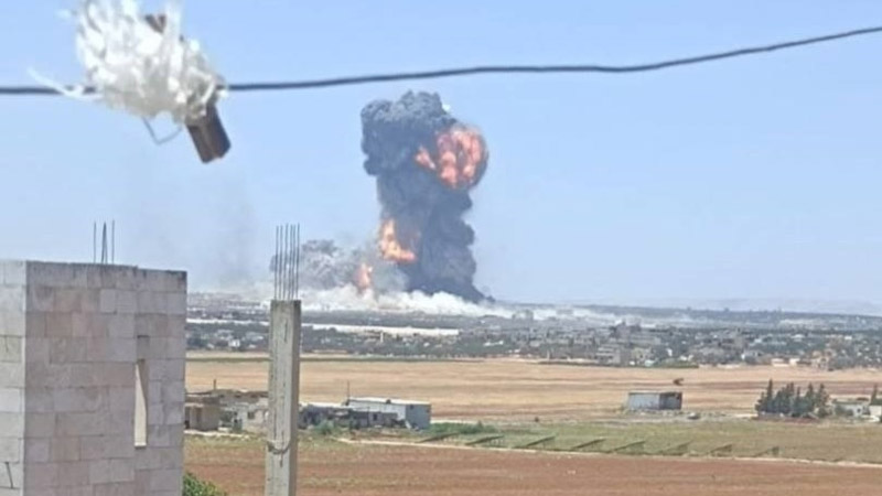 وبحسب وسائل إعلام محلية، فإن الانفجار ناتج على الأرجح عن تفجير مستودع ذخيرة يقع على الطريق المؤدي إلى معرة مصرين.